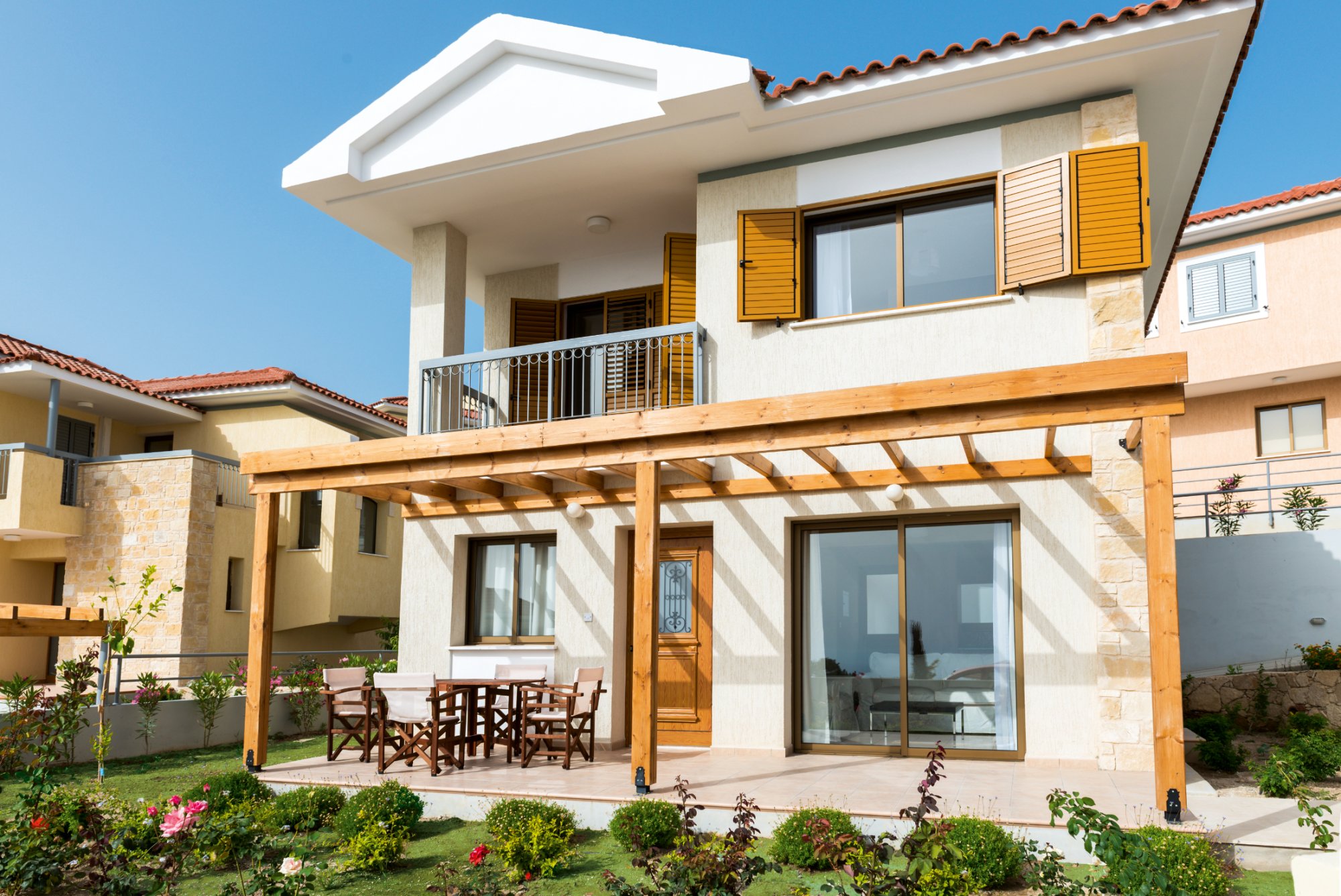 Konia Hills offers an array of sought-after amenities, including expansive tiled balconies and verandas, and beautifully landscaped private gardens for both relaxation and entertaining. Private parking is available for added convenience, and there is an option to include a private swimming pool, perfect for unwinding. Inside, the homes feature elegant ceramic floors, a charming stonework fireplace, bedroom window shutters, and double-glazed windows. The open-plan kitchen is equipped with modern granite countertops, and the master bedroom features en-suite facilities, ensuring both sophistication and comfort. Top-tier security measures, including a secure front gate and a dedicated guard, provide residents with peace of mind.