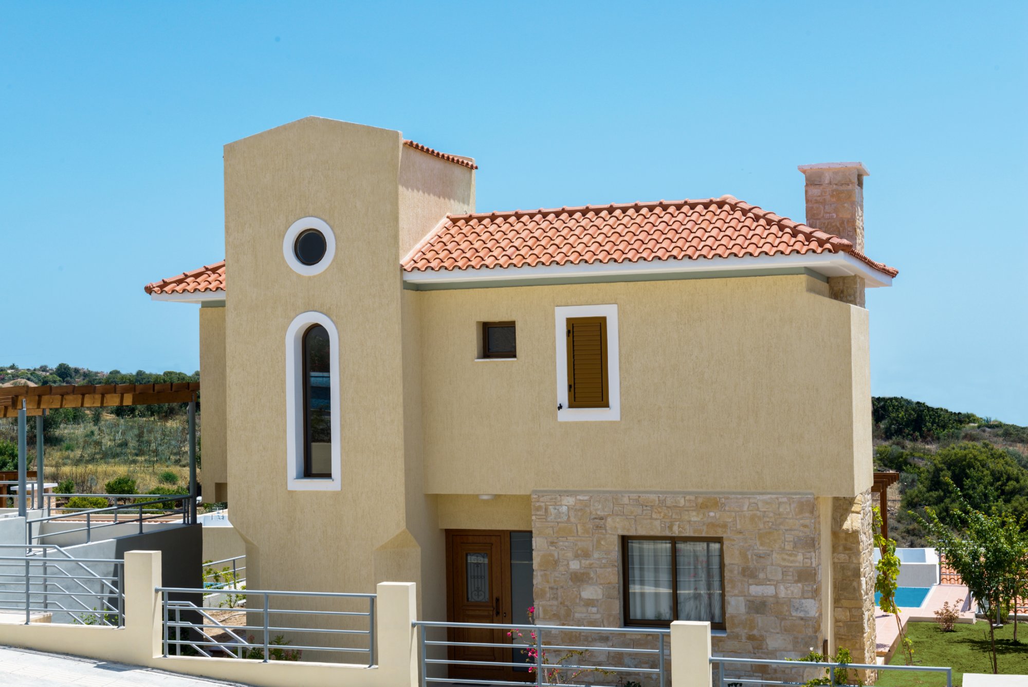 Konia Panorama properties offer a perfect blend of modern elegance and sleek, functional design. Featuring unique stonework fireplaces, window shutters, and double-glazed windows, each home is equipped with a solar water heating system to ensure energy efficiency and sustainability. The properties boast expansive tiled balconies and verandas with stunning sea views, providing an ideal space for both relaxation and entertaining. An optional private swimming pool, secure parking areas, and serene private gardens add to the convenience and create a peaceful escape from the everyday hustle and bustle.